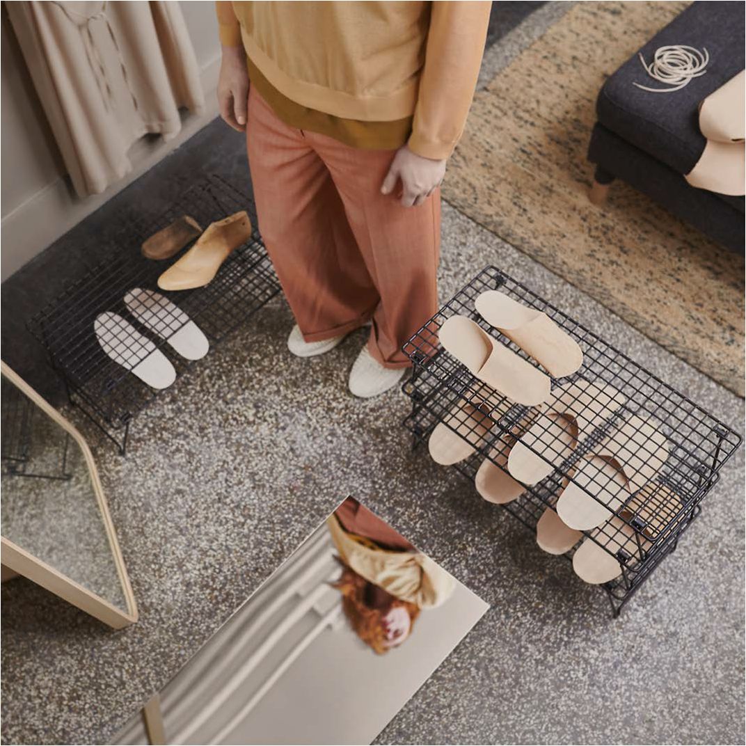 ¥29.9 这架势看起来像用来烧烤的 然而是个便捷的鞋架 每个鞋架最多可以放三双鞋子 可以将三个叠放在一起使用